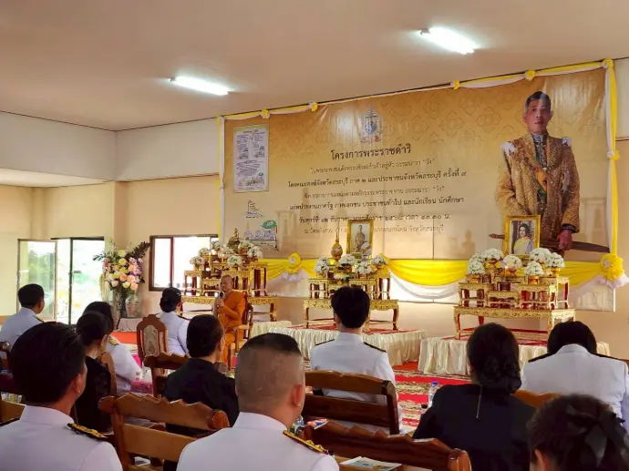 ผู้บัญชาการโรงเรียนนายเรืออากาศนวมินทกษัตริยาธิราช ได้มอบหมายให้ นาวาอากาศเอกหญิง ผู้ช่วยศาสตราจารย์ สัณสนีย์ เหมาคม ผู้อำนวยการกองวิชาวิทยาศาสตร์ กองการศึกษา โรงเรียนนายเรืออากาศนวมินทกษัตริยาธิราช เข้าร่วมกิจกรรมตามโครงการพระราชดำริ ในพระบาทสมเด็จพระวชิรเกล้าเจ้าอยู่หัว “ธรรมนาวา วัง” โดยการบรรยาย หลักธรรมพระราชทาน เพื่อส่งเสริมความรู้และประโยชน์แก่ประชาชน รวมถึงสนับสนุนการพัฒนาสังคมไทยให้เกิดความเข้มแข็งและยั่งยืน ณ วัดหลังสวน อำเภอหนองโดน จังหวัดสระบุรี เมื่อวันที่ ๑๒ ธันวาคม พ.ศ.๒๕๖๘