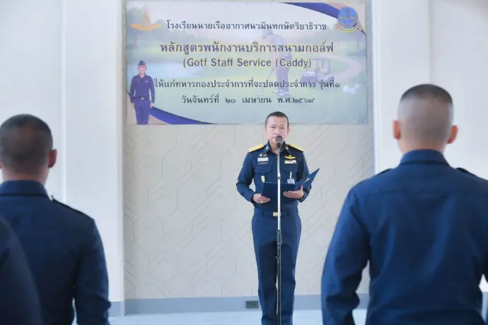 พลอากาศโท ปิยะกิตติ์ สุทธิวัฒน์ธนากูล ผู้บัญชาการโรงเรียนนายเรืออากาศนวมินทกษัตริยาธิราช เป็นประธานในพิธีเปิดโครงการฝึกอบรมหลักสูตรพนักงานบริการสนามกอล์ฟ (Golf Staff Service : Caddy) สำหรับทหารกองประจำการที่กำลังจะปลดประจำการ รุ่นที่ ๑ จำนวน ๒๐ คน จัดขึ้นระหว่างวันที่ ๒๐ – ๒๔ เมษายน พ.ศ.๒๕๖๙ ณ สนามพัฒนากีฬาโรงเรียนนายเรืออากาศนวมินทกษัตริยาธิราช