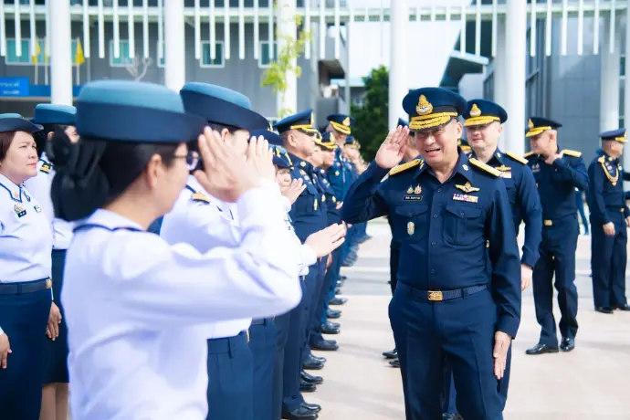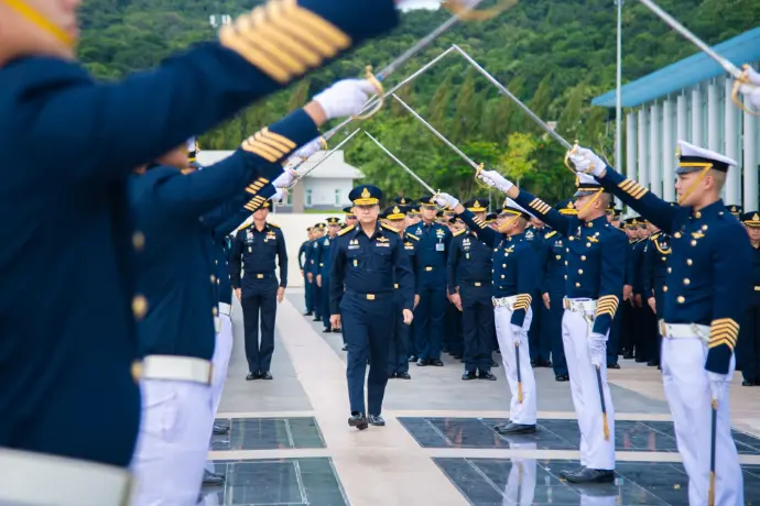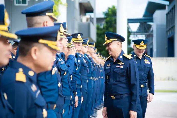 พลอากาศเอก ธัชชัย อัจฉริยาการุณ ผู้ทรงคุณวุฒิพิเศษกองทัพอากาศ และอดีตผู้บัญชาการโรงเรียนนายเรืออากาศนวมินทกษัตริยาธิราช เข้าร่วมพิธีเทิดเกียรติและอำลาชีวิตราชการ ประจำปี ๒๕๖๘
