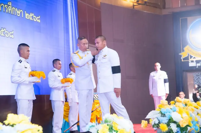 เป็นประธานในพิธีประดับเครื่องหมายยศนายทหารชั้นสัญญาบัตรชั้นยศเรืออากาศตรี ให้แก่นักเรียนนายเรืออากาศ รุ่นที่ ๖๙ จำนวน ๑๑๓ คน ที่สำเร็จการศึกษา ตามหลักสูตรของโรงเรียนนายเรืออากาศนวมินทกษัตริยาธิราช และมอบโล่ทองรณนภากาศจำลอง ให้แก่นักเรียนนายเรืออากาศ ที่มีผลการศึกษาดีเด่น ในการนี้ พลอากาศโท ปิยะกิตติ์ สุทธิวัฒน์ธนากูล ผู้บัญชาการโรงเรียนนายเรืออากาศ